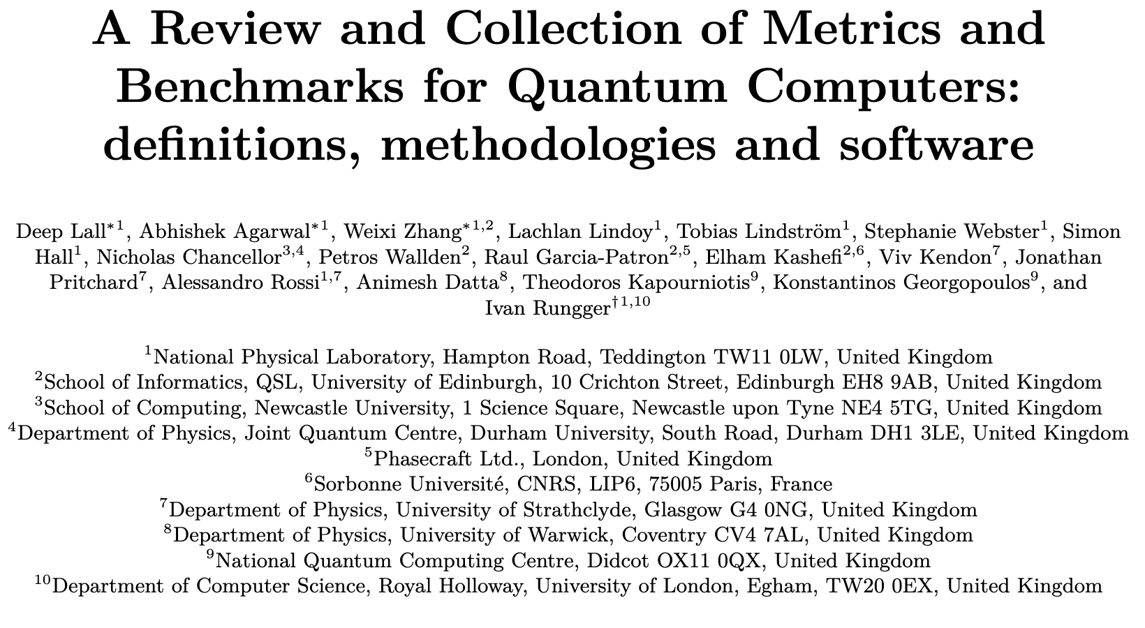 A Review and Collection of Metrics and Benchmarks for Quantum Computers: definitions, methodologies and software